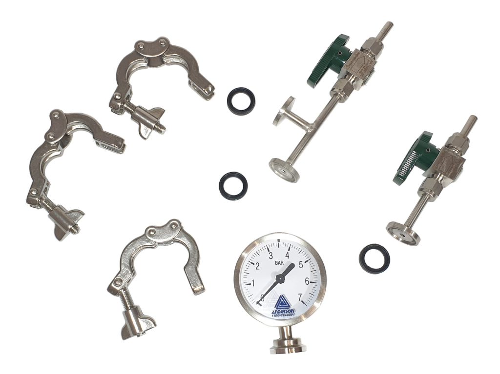 – 2 pipes with valve and micro-clamp connection for pressure gauge